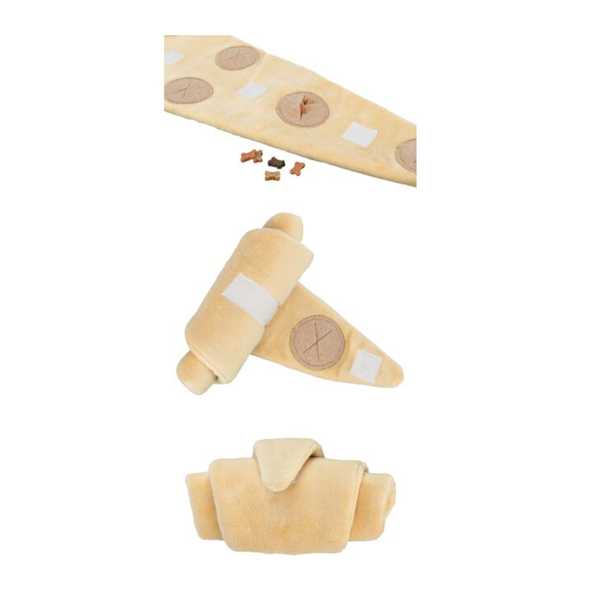 Mucho más que un peluche: esta Juguete Olfativo Croissant Rellenable combina juego, estimulación mental y diversión en un solo producto. Sus pliegues suaves permiten esconder snacks o premios, invitando a tu perro a usar el hocico para encontrarlos y activar su instinto natural de búsqueda.