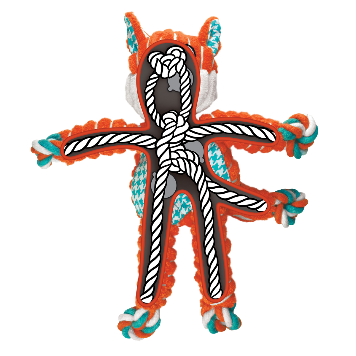 ¡Que bonito es el Kong Knots Conejito de Nudos! Tiene un alegre y tierno diseño que permite una gran diversión con las sacudidas. En su interior tiene cuerda anudada lo que hace que este peluche sea tan resistente y además satisface los instintos naturales al sacudirlo, mientras que las variadas texturas y los chirriadores preparan para un juego correcto y sin peligros.