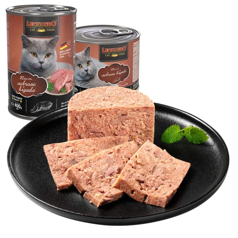 Paté Leonardo Puro en Hígado 400 gr es un alimento húmedo con carne fresca e ingredientes cuidadosamente seleccionados y cocinados. La mezcla se envasa fría en latas y éstas se cuecen al vapor. Aroma característico, para gatos con preferencia por las vísceras.